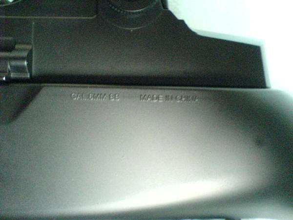 nur eine Kaliberangabe CAL.6MM BB und ein MADE IN CHINA.