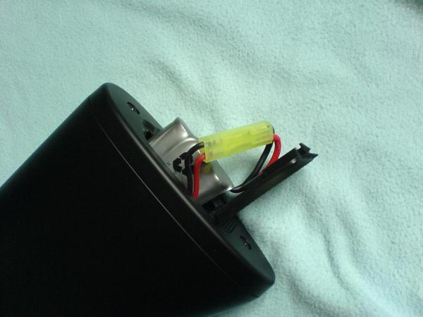 an der Endplatte des Kolben öffnen. Der Akku ist klein und das Fach bietet
