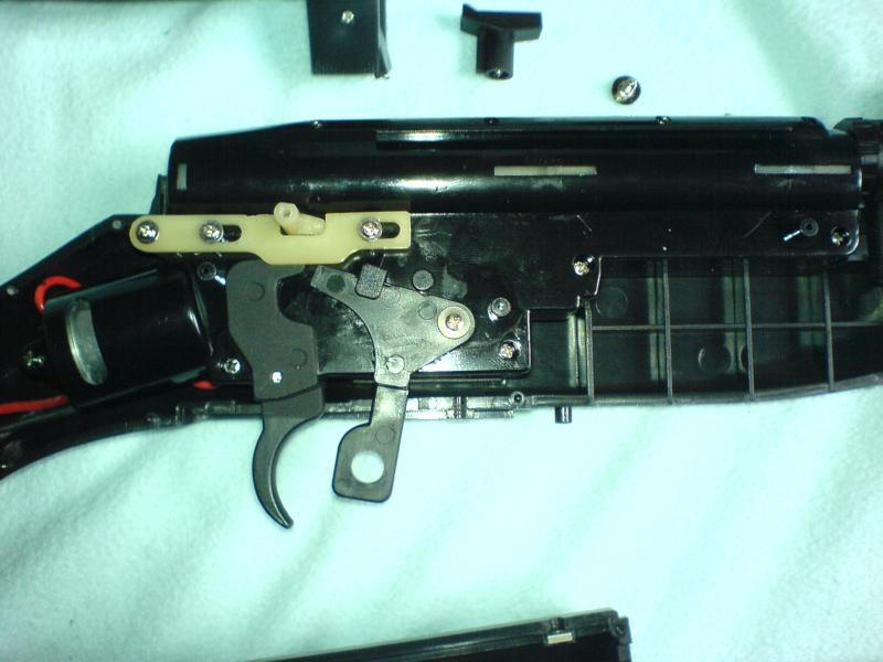 Feuerwahlhebel (eine Schraube) auch gleich abmontieren.
