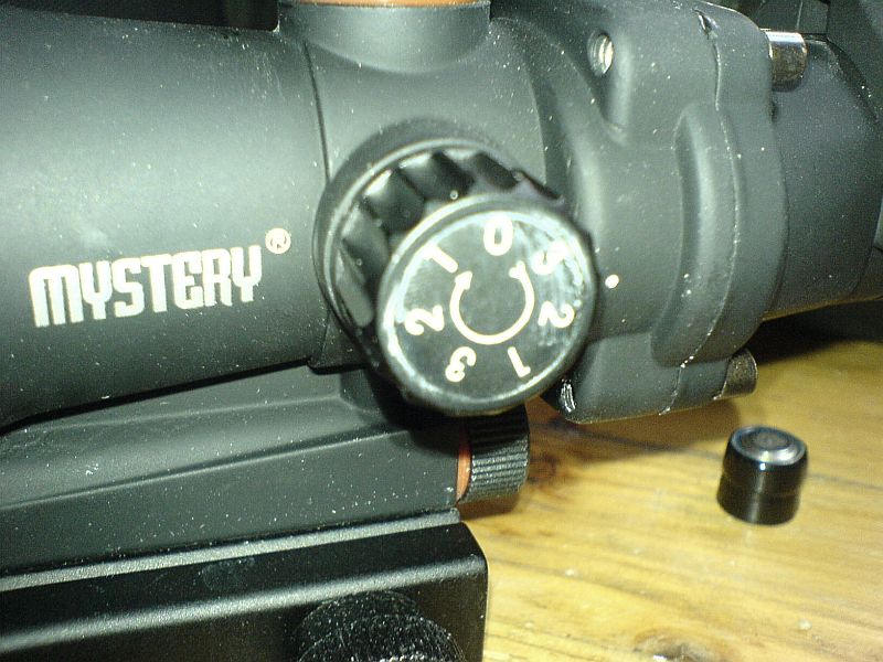 Das Rad zum anstellen und einstellen des Zielkreuzes. 0 ist aus, wie manche