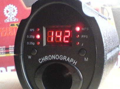 Zusätzlich zur Schußstärke kann das Gerät auch die ROF messen, soweit sie im Bereich von 6-25 RPS liegt.