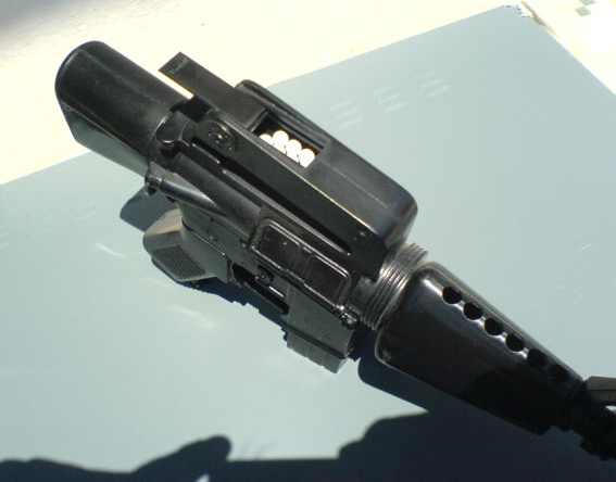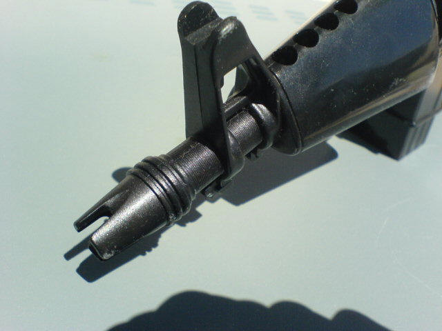 Das Visier ist irgendwie auch da. Irgendwie, weil die Kimme nicht da ist und beim Korn das Körnchen fehlt. Aber wir sehen an dem AR3prong Flashhider und dem geriffelten Lauf, dass wir es mit einer frühen Vietnamversion zu tun haben, was das Modell besonders liebenswert macht.