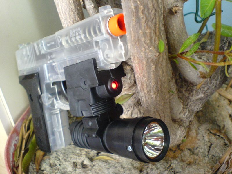 Wie funktioniert das Teil? Frag nen Politiker oder Polizisten, und wir haben hier ein Teil das die innere Sicherheit der BRD auf erheblichste gefährdet. Ich beschreib das aber mal etwas objektiver. Was macht das Rote Licht, das einen Laser imitiert? Es leuchtet rot. Und was macht die Taschenlampe? Die schafft es auf bis zu etwa 1 Meter Entfernung eine Postkarte auszuleuchten. Den Lichtschein nimmt man im dunklen wahr, am Tag merkt man allerdings nicht, dass die Lampe eingeschaltet ist.