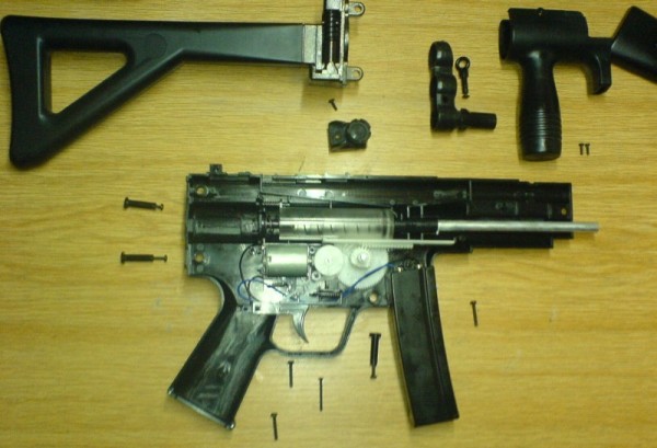 Die Softair in Einzelteilen mit allen Schrauben