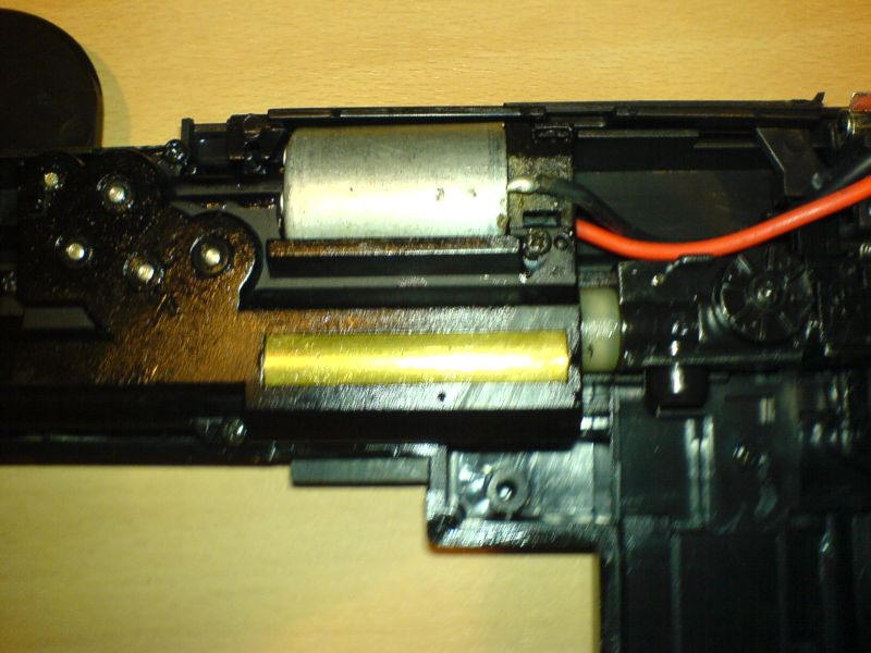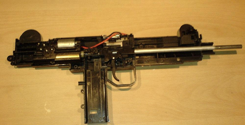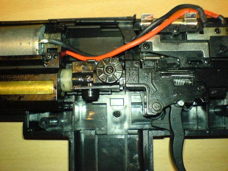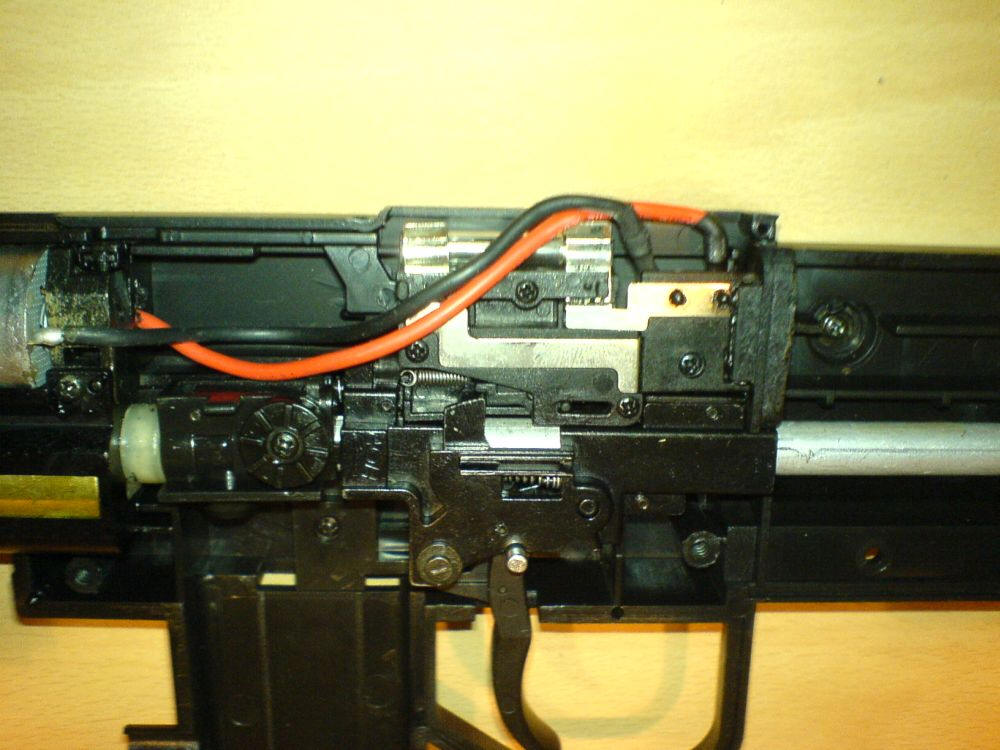 Nun hat man Zugriff auf das komplette Innenleben der Softair. Es bleibt übrigens alles an seinem Platz. Keine Feder springt heraus oder geht besonders leicht verloren.