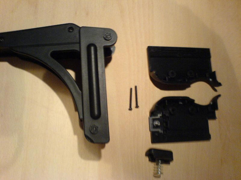 Abgeschraubte Schulterstütze und Griffschalen.