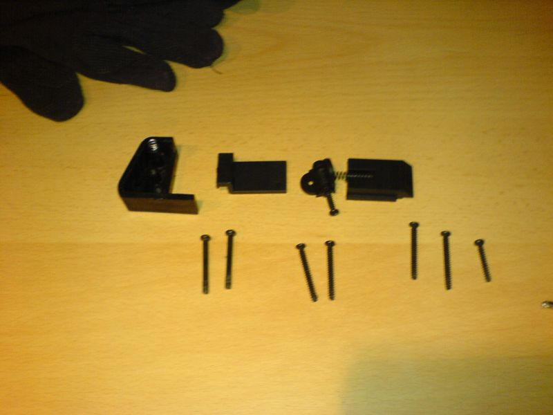Die Einzelteile des Visiers hinten, alle Schrauben und ein Teil der Befestigung der Schulterstütze.