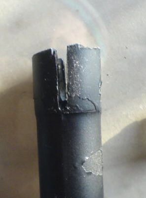 Der Einschnitt auf der "Vorderseite" des Rohrs.